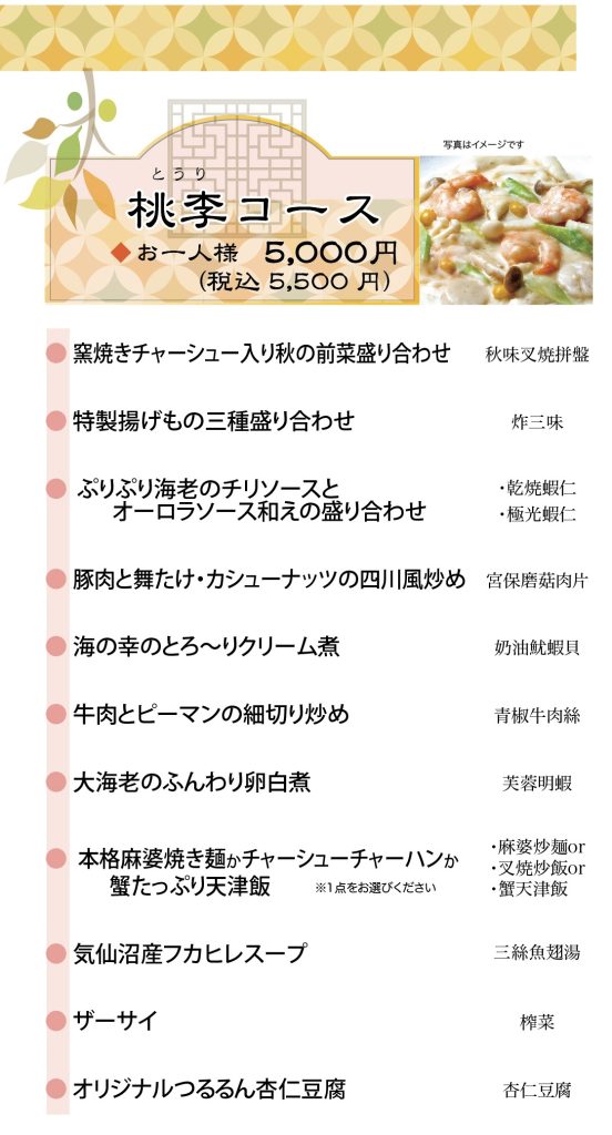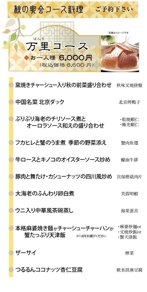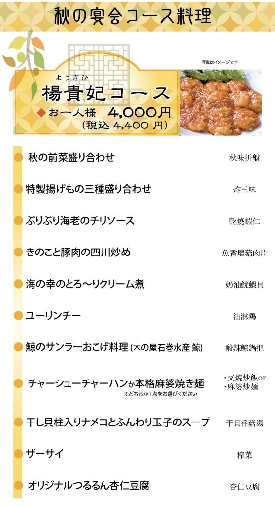 上記メニューは4名様以上のメニューです。3名様までのメニューは係員にお尋ね下さい。